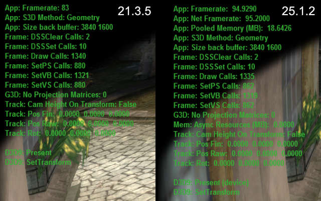 Witcher 1: 25.1.2 is actually ~15% faster at (almost) identical draw counts in this game.